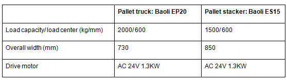 Baoli Material Handling Europe has launched its first warehouse trucks to the European market, offering these models in addition to its forklift trucks from 1 to 10 tons load capacity. The Baoli EP20 2 T electric pallet truck and the Baoli ES15 stacker truck with 1.5 ton capacity are now available for Baoli distributors across Europe. For reliable transport and storage in warehouses, both trucks are equipped with AC motors and controllers, which ensure efficient operation as well as low-cost maintenance.