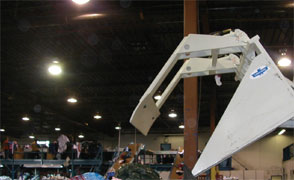 Cascade Corporation's Canadian facility in Mississauga, Ontario is just a 5 minute drive from Lester B. Pearson airport (Canada's largest). The 65 employees at this facility are proud to say that they are "The" Remanufacturing facility for North America as well as the Worldwide Headquarters for "Application Specific Product". In addition, they supply Canadian Customers with the complete Cascade product line and Liftech masts. Cascade Mississauga designs and manufactures specialty attachments such as Block Handlers, Marble Slab Handlers, Stationary Load Inverters, Load Transfer Station, Fixed Fork Spreaders, Load Extenders, Inverta PushTM, Tipping Clamps, Bread Handlers, Broke Paper Clamps, Buckets, Drop Bottom Box Dumpers, Train Wheel Handler and the new Wine Barrel Handler. Pictured below is an "Application Specific Product", a tilting bucket with a grapple arm-used in the textile industry.