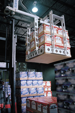 In beverage distribution, the Cascade Layer Picker is a powerful tool to help improve speed and satisfy demand. Distributors have to create mixed loads quickly to satisfy their customers, with just in time (JIT) daily shipments being the norm. A Layer Picker handles single layers or multiple layers of both canned & bottled product to easily build mixed-load pallets. One forklift operator can fill orders at greatly increased speed: from approximately 25 layers of product per hour manually to an average rate of 180 layers per hour - even up to 300 layers per hour in some cases. This system streamlines the picking process and increases the speed of pallet production without adding labor.
