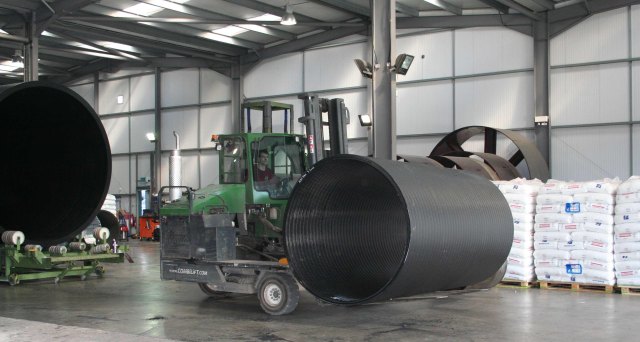 Two Combilift 4-way forklifts are making light work of Asset International's long loads at its plant in Newport, South Wales, UK. The company is the leading manufacturer of high density polyethylene WEHOLITE pipes in the UK and Ireland, which are used across wide ranging applications such as storm water storage, sewage treatment, landfill and highway drainage. Asset International supplies stock sizes of 6, 12 and 14m as well as customised products, and as it also manufactures the world's largest plastic pipe with an internal diameter of 3.5m, it was facing a number of challenges when it came to manoeuvring finished product around the extensive site. In a bid to make handling procedures safer and more streamlined, Production Manager Graham Bennett called in his local materials Handling experts from South Wales Industrial Equipment (SWIE).