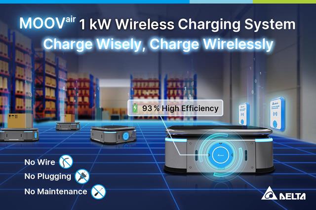 Delta, a global provider of power and thermal management solutions, introduces the brand new Wireless Charging System MOOVair Series - an innovative industrial charging solution for automated electric-driven vehicles. The newly presented MOOVair 1 kW Wireless Charging System offers up to 1 kW contactless, high efficient charging for all types of 24 V / 48 V batteries, and is suitable for automated e-vehicles that require a frequent battery charge.