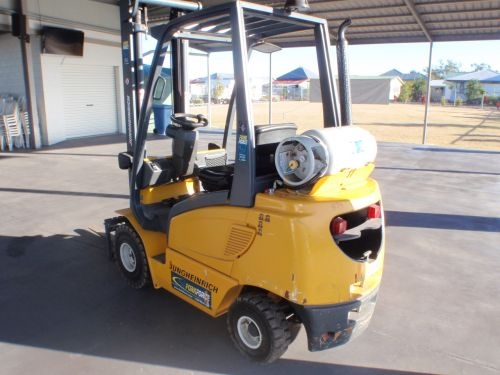 MODEL: 2002 Jungheinrich TFG 20; ENGINE: 4 CYL Petrol/Gas; CABIN: Open rops fops; TRANSMISSION: Hydrostatic HOURS: 3373 ; (Indicated) COLOUR: Grey over yellow (signage); MAST: 2 stage with side shift; SERIAL#: 100033311