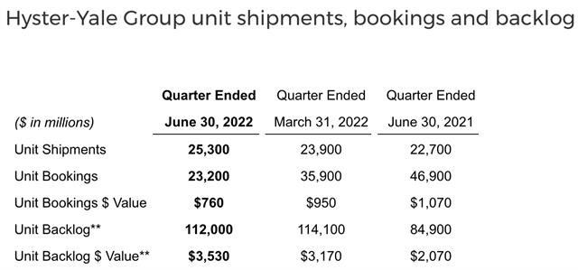 Hyster Yale notes an operating loss of USD11.7 million in the second quarter of 2022 for its