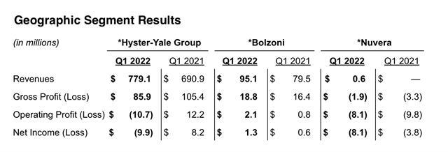 Hyster-Yale Materials Handling recorded a USD25 million loss for the first quarter of 2022 despite strong sales and shipments.