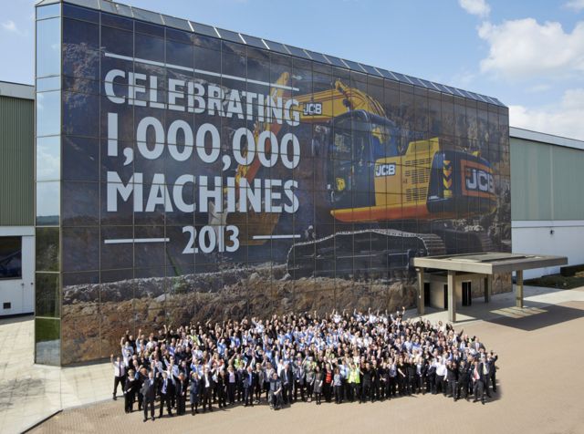 JCB employees celebrate the company's one millionth machine milestone. |