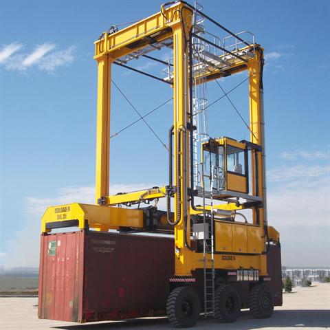 Isoloader is a manufacturer of straddle carriers and rubber tyred gantries providing container and heavy load handling solutions for operations handling from 100 to 100,000 loads per year. The Transporter series is a dependable high capacity straddle carrier designed for intermodal terminals, logistics centres and warehousing. It is available in 1-high, 2-high and 3-high models with a travel speed of 20km/h.