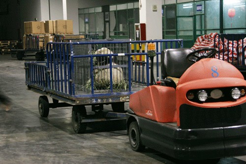 A Linde electric tow tractor was used to transport a Giant Panda in a two-metre long cage from Sichuan Wolong Nature Reserve.