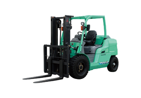 The forklifts' power train is MHI's proprietary lithium-ion battery, a diesel engine, two induction motors and an inverter. MHI used the "series and parallel" method and its high-capacity lithium-ion battery to downsize the engine while maintaining performance. The company says that boosts fuel efficiency and reduces carbon dioxide emissions "by slashing engine-displacement by one-third".