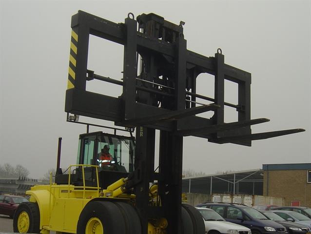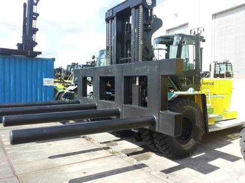 Or a model with 1 boom, attached on a special side shift frame. Capacity 32T/1200mm.