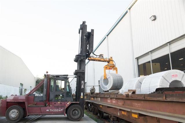 MiTek USA has achieved productivity and safety improvements after deploying a custom lifting product that attaches to a forklift to unload steel coils from rail cars at its stamping plant in Tampa, Florida.