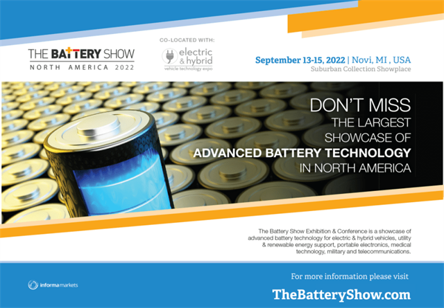 Slated to take place from September 13-15, 2022, the co-located trade show expanded the show floor to accommodate an extra 8,000 NSF, packed full of hundreds more industry-leading suppliers. Notable exhibitors confirmed include 6K Energy, American Battery Solutions, Beckhoff Automation, DEWEsoft, Engel, Festo, IMA Spa, Lion Energy, Magna Powertrain, Marelli, National Instruments, Navistar, Thermo Fisher Scientific, and Xalt Energy, among others.