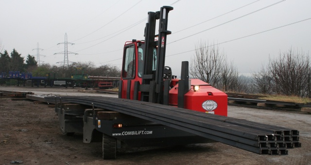 Combilift put its slogan "Customised Handling Solutions" to the test when it modified a Combilift C6000SL for Hillsborough, a steelstock warehouse in the UK. Hillsborough handles up to 20,000 tons of steel products a year in the form of steel plates, as well as 18 metre bundles of tubes and bars. Combilift customised the C6000SL by adding a wider-than-normal deck to prevent stock from bending and deck end-stops to prevent round stock such as tubes and pipes from rolling off.