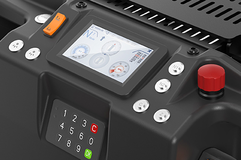The HERO is built for versatility with an extendable telescopic front tray, a fixed rear materials tray, a towing capacity of 2,600lbs, and integrated operator compartment storage space for documents and pick tickets. A keyless PIN code panel with RFID card support, CAN-bus diagnostics, and an LCD display with real-time performance data always give operators full control and visibility.