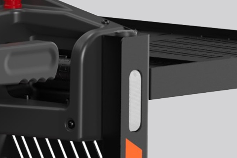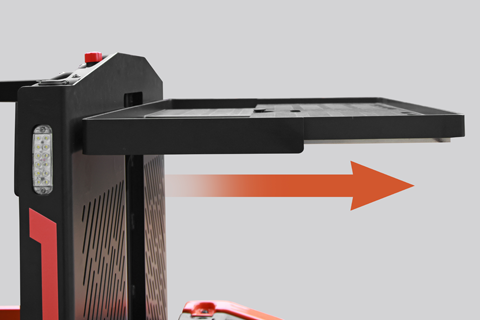 - An extendable powered front load tray to increase carry volume while maintaining an unobstructed view for the driver during operation