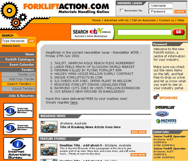 Forkliftaction.com as difficult but exciting. "I remember my colleague and I going to CeMat in early 2000, just before the launch, to gauge industry opinion about the venture. It was a very mixed reaction; many in the industry didn't trust the new technology and couldn't see how it could help their business." However, between the official launch of Forkliftaction.com later in the year and the launch of the fully functional portal in 2001, attitudes and internet use had changed considerably.