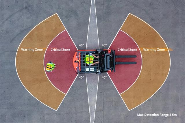 With its pinpoint people detection technology, this VIA Mobile360 Forklift Safety System prevents collisions with pedestrians in complex work environments by alerting the forklift operator whenever someone inadvertently steps within a hazardous range of their vehicle.
