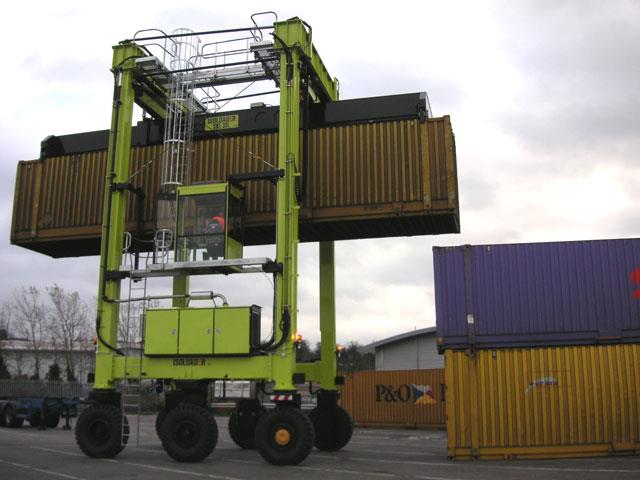 CVS claims to manufacture the world's only straddle carrier that can lift one-over-two or one-over-three, fully hydrostatically, with motors fitted inside the machine's wheel hubs. The hydrostatic drive cuts maintenance costs because there are no mechanical parts involved in the transfer of torque from the engine to the wheels that could break down.