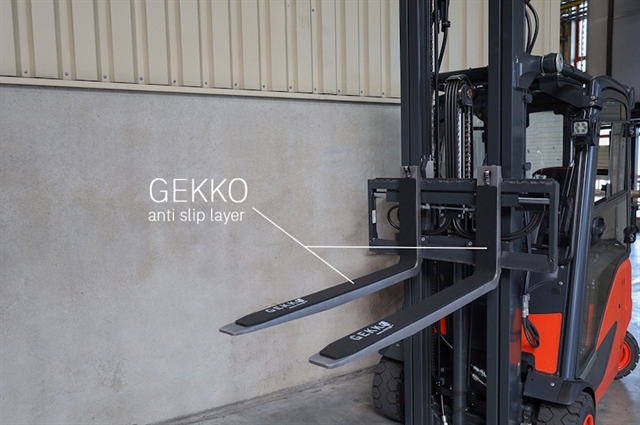 This CleverHelper is just as nimble as the four-legged friend: quickly fitted - and just as quickly removed. Thanks to the integrated magnets, the GEKKO anti-slip pad not only adheres firmly to the forks, but also holds the load in place during transportation. In the waiting position for its next use, GEKKO sticks discreetly to the lift mast of the forklift - just like its natural model on the wall of a room. Its anti-slip surface minimizes damage to the goods and also reduces noise and vibrations during transport. Creative forklift drivers sometimes also use it as impact protection.