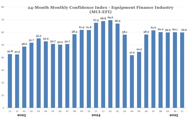 The US Monthly Confidence Index for the Equipment Finance Industry (MCI-EFI) remained relatively unchanged for November, to sit at 59.9, suggesting confidence in the sector remains stable.