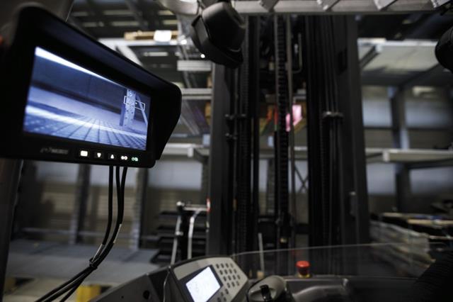With this system the driver can see everything that is happening in front of his industrial truck via the same monitor, even though the load is picked up. People and obstacles are detected at an early stage and damage is reduced.