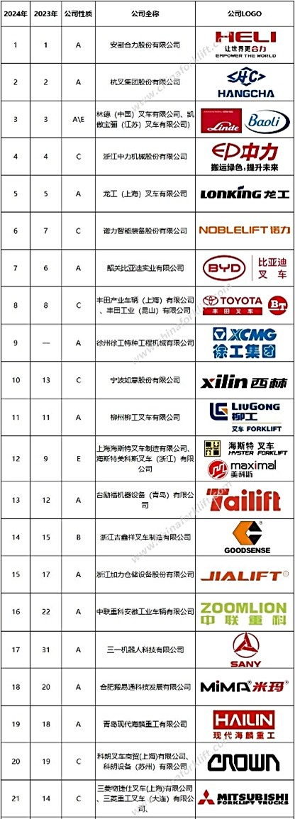 April 3, 2025 — China Forklift Website has released the 2024 Annual Ranking of Chinese Forklift Manufacturers.
